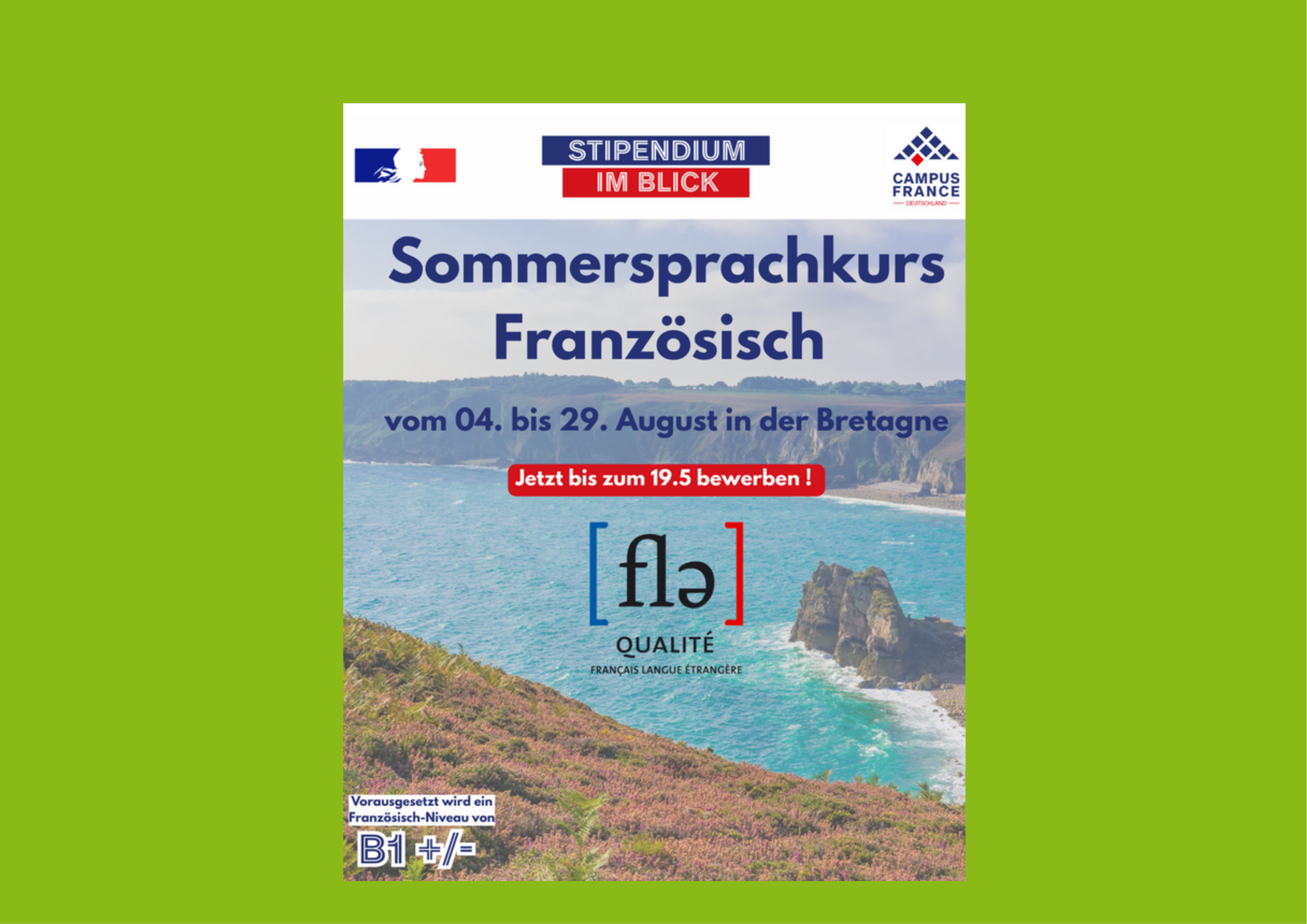 Das Büro für Hochschulkooperation des Institut français Deutschland und der Französischen Botschaft in Deutschland bietet in Verbindung mit Campus France Deutschland einen Intensiv-Sommer-Französischkurs in der Bretagne an.